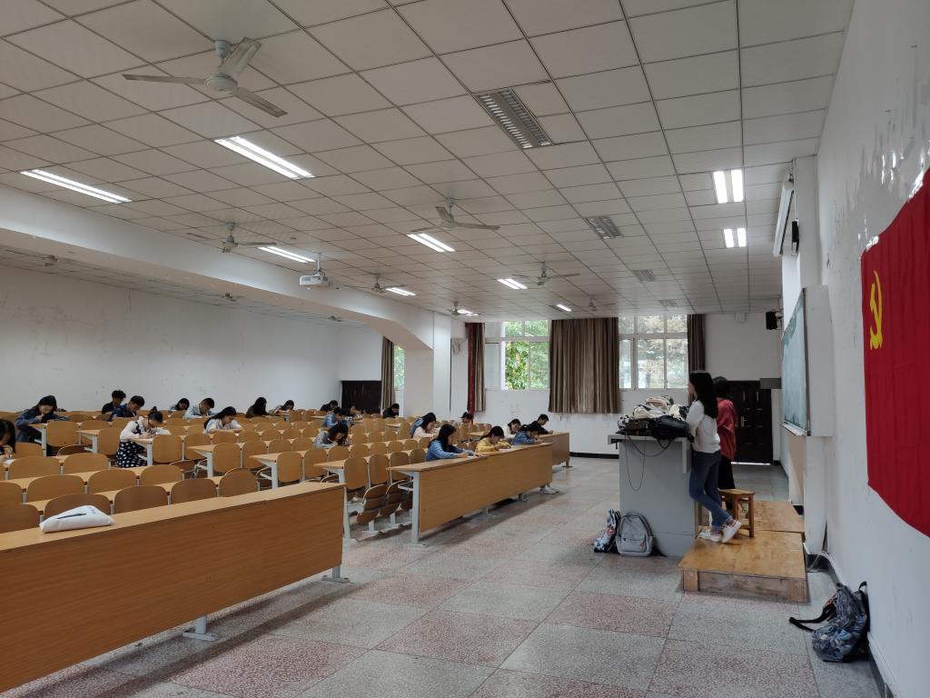 在考试开始前,由监考人员宣读考试规则并分发试卷。本次考试以党建、党史、党章、习近平系列讲话、党的十九大、两会为主要内容,较为全面的检验了同学们对党建知识的了解程度、对中国共产党的认知深度以及对党员身份的理解。在整个考试过程中,每位同学都认真对待,巡考人员亦专心致志。考试结束后,考生陆续上交试卷,监考人员仔细核对并装袋封卷。至此入党积极分子选拔测试顺利结束。