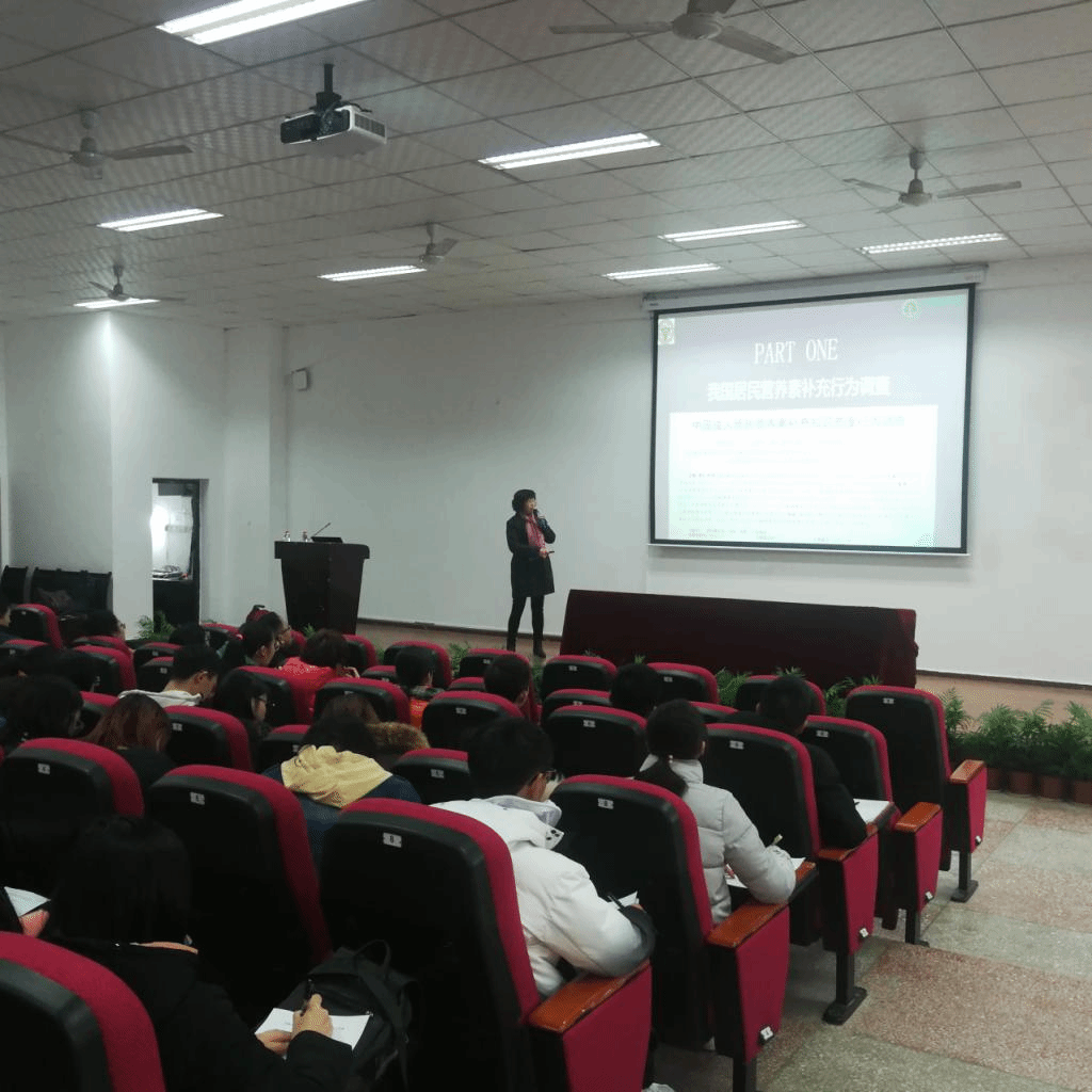2019年12月6日上午9:30在明辨楼2栋106,应公司邀请,东南大学公共卫生学院孙桂菊教授为公司食品专业同学作了题为《营养素补充与健康证据体及专家共识解读》的学术报告。
