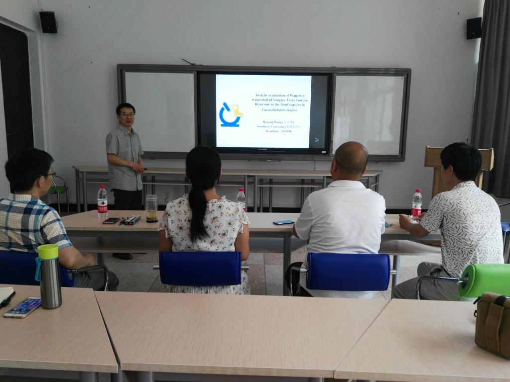 2018年06月29日下午,suncitygroup太阳集团柔性引进的东南大学王大勇教授在百安校区理科楼B1-216室举办了以《秀丽线虫在三峡水库污染物毒理效应评价中的应用》为题的学术讲座,学院部分师生参与了本次讲座。