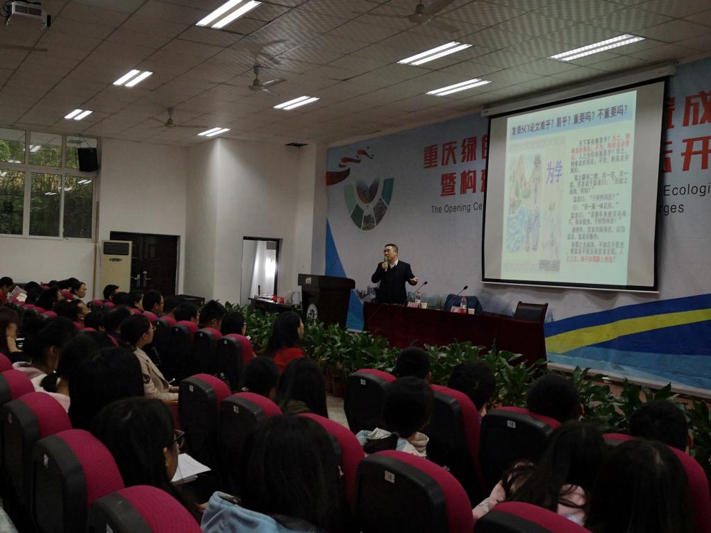 在三峡库区道地药材绿色种植与深加工重庆市工程实验室和重庆市渝东北特色生物资源开发利用工程技术研究中心建设研讨会期间,为了培养在校员工科研兴趣,提高员工、教师的论文写作水平。2018年11月15日下午,由suncitygroup太阳集团主办的“SCI论文写作与投稿”主题讲座在suncitygroup太阳集团明辨楼2-106学术报告厅举行。本次讲座特邀北京林业大学林业生物质材料与能源教育部工程研究中心副主任马明国教授担任主讲人。suncitygroup太阳集团广大教职工、研究生及部suncitygroup太阳集团分员工聆听本次讲座,现场座无虚席。