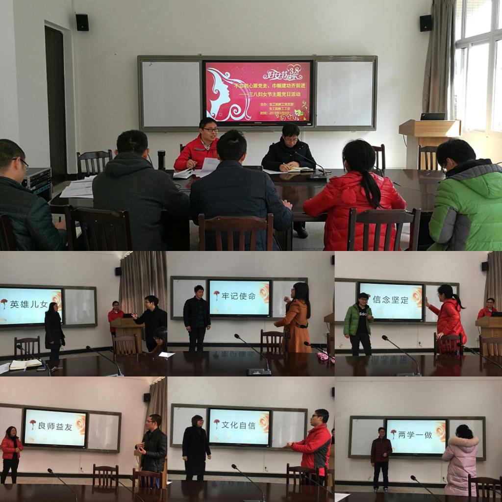拓展活动遵循公开、公正、公平的原则,采取“你来比划我来猜”的形式开展,活动内容围绕描述女性美好形象的词或十九大相关的热点词汇。参赛教工激情异常高涨,又活跃(满场欢声笑语)。在愉快的氛围中体现了对妇女同志的关爱,以及很好的践行了十九大精神,体现了“两学一做”。最终通过比赛决出一等奖1组,二等奖2组,三等奖4组。
