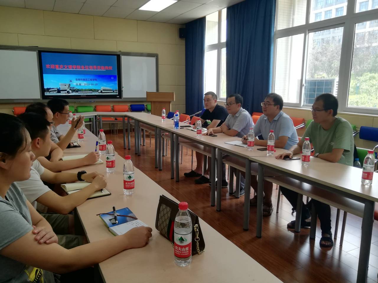 8月20日下午,重庆文理学院研究生处副处长樊汶樵教授、园林与生命科学学院副经理孙翰昌教授、教务处副处长姜玉松教授、园林与生命科学学院教师胡靖博士一行来公司进行座谈交流。公司经理肖国生、教师杜慧慧、王启龙、和研究生程飞参加了此次座谈。