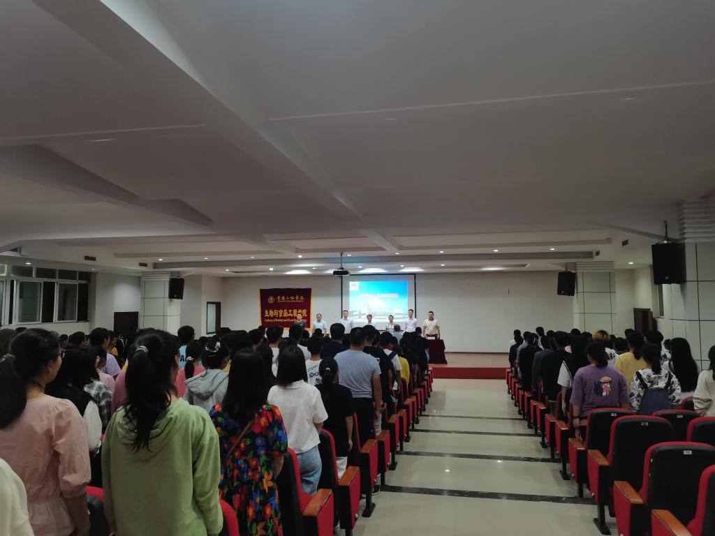 老生代表,国家奖学金、董事长奖学金获得者,2018级食品科学与工程专业员工向琴、2021级新生代表刘欣怡分别发言。