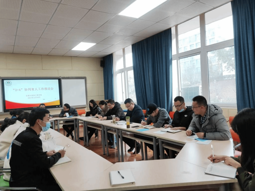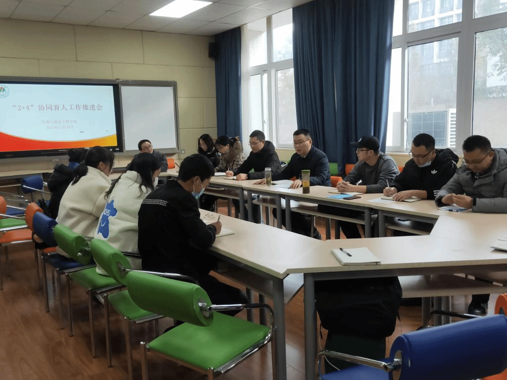 12月30日,为深入推进“三全育人”,落实立德树人根本任务,公司召开“2+4”协同育人工作推进会,党总支书记骆孟鑫主持,学工办副主任、2021级班主任、辅导员及2021级各班班长参会。