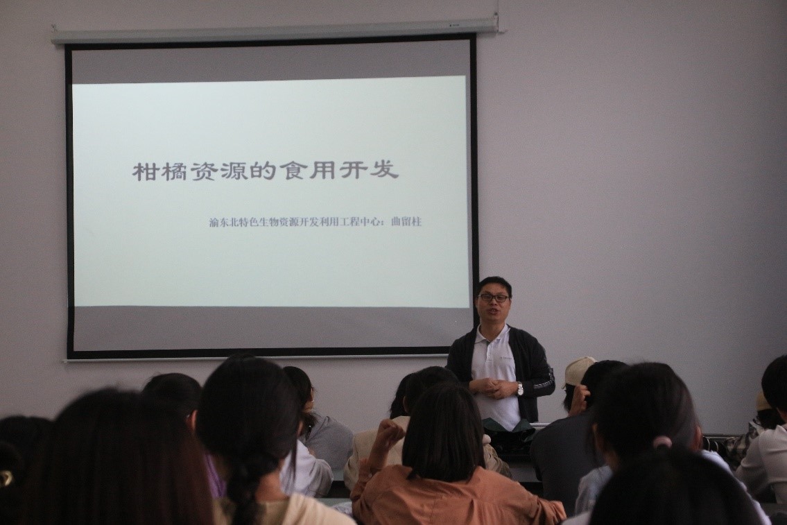 活动过程中,邀请了“工程技术研究中心”的学术骨干为参观者做了多场别开生面的科普讲座。甘丽萍教授介绍了三峡库区消落带适生植物筛选与示范应用,展示了此项目形成的良好的景观和生态效益。戚文华教授和周游博士介绍了三峡库区特有的动物和植物资源。杜慧慧副教授展示了果酒、玫瑰香橙口红与精油等产品,并简单介绍了其制作过程,讲述了“轻奢”的理念。顾欣副教授从功能活性产品的应用方面倡导员工关注生物再利用,传递绿色环保理念。曲留柱博士以柚子为例,声情并茂地讲解了柑橘资源的食用开发,展示了柑橘的丰富资源。赵峰研究员结合自身科研成果介绍了神奇的微生物,讲解了微生物在食品、保健品及医药领域的应用。