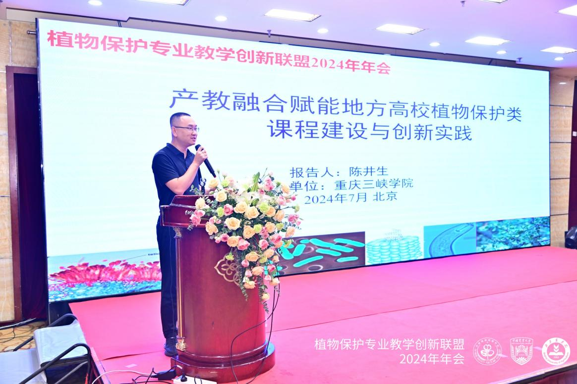 公司陈井生博士围绕“产教融合赋能地方高校植物保护类课程建设与创新实践”作大会报告,从产教融合课程实践、教学设计及创新手段、产教融合成效等方面,介绍了学院植物保护类课程的建设情况,展示了学院产教融合公司产品工作的风采,与全国植物保护专业同行专家进行了深入交流。(陈井生供稿)