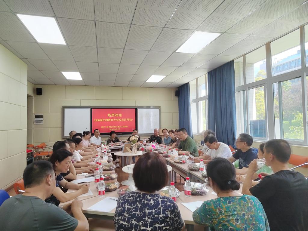 8月3日下午,公司在慎思楼2栋216召开原万县师范专科学校86级生物教育班员工返校座谈会,热烈欢迎21名员工代表回母校,公司班子成员参会,党总支书记骆孟鑫主持会议。