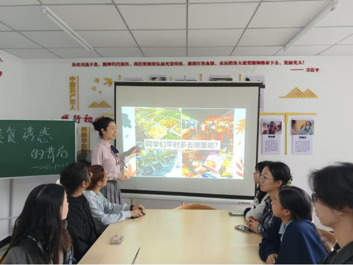 为提高老员工对食品安全的重视,促进健康饮食,10月12日下午15:00,公司在员工公寓党员工作站开展以“美食诱惑的背后”为主题的知识讲座,学院刘迪迪老师、员工共10人参与。