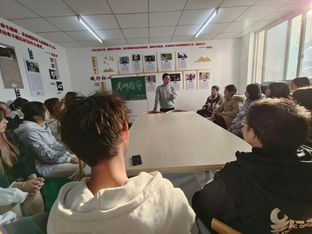 为解决考研困惑,帮助同学们制定科学合理的备考计划,12月14日下午16:00,公司初心工作站在蓝雾苑2舍4楼活动室开展考研指导活动,学院周大祥老师、员工共计30余人参加。