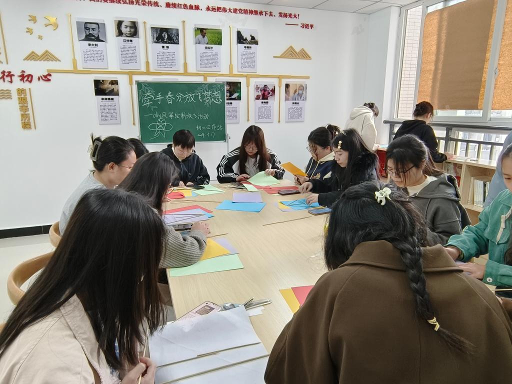 春分一到,雨霁风光。活动中,黄雷同志为大家介绍了有关春分的由来、意义与相关习俗,简单指导大家进行风筝的制作。同学们学习了风筝的制作方法后,开始动手制作风筝,并在风筝上绘制与春天有关的元素。在制作过程中,大家交流借鉴、互相学习,有的同学绘制出惟妙惟肖的锦鲤图案,有的制作出栩栩如生的花朵,还有一些同学勇于创新,设计出新型风筝。活动在欢乐的氛围中圆满结束,同学们纷纷表示不但增强了动手能力和团队凝聚力,还充分了解了有关春分的知识,进一步提高了对传统文化的认同感。