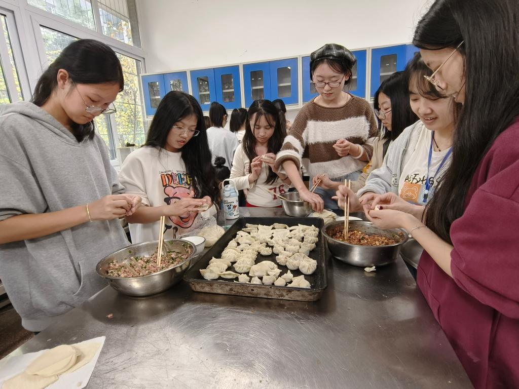 活动前,吴佳佳同学为大家介绍了有关立冬的文化习俗,她提到:“立冬吃饺子,是我们中华民族的传统习俗,它不仅仅是一种食物,更是亲友团聚、幸福美满的象征。”活动中,大家分工明确,备食材、调馅料、包饺子,每一步都充满了欢声笑语。当一盘盘热气腾腾的饺子出锅,大家围坐在一起品尝着自己的劳动成果,感受立冬的温暖与美好,纷纷分享关于立冬吃饺子的美好记忆。