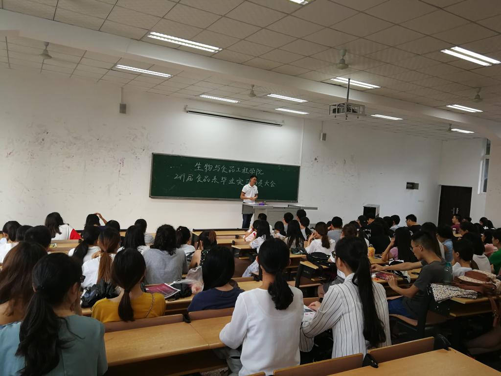 2018年6月19日,为了确保2015级食品系即食品科学与工程专业和食品质量与安全专业的员工能良好完成毕业实习,公司于新二教101召开食品系毕业实习动员大会。大会由示范中心主任曲留柱主持,公司党总支书记谭力、副经理周浓、学工办主任李华林等出席大会,并做动员讲话。谭力书记从实习目的意义的阐述,到学校企业相关规章制度的前期学习,再到意识形态把控,遵纪守法,拥党爱党,最后重点突出在人身安全、财产安全、生活安全等几个方面对员工提取了良好的建议和要求。周浓副经理阐述了毕业实习的工作特点和性质,要求员工在实习中摆正姿态学习做人做事的道理,即通过实习实践理论知识,提升实践动手能力,提高综合能力等为未来就业做好准备。主管毕业实习工作的曲留柱老师着重强调外出实习代表着公司公司的形象,倡导员工严格要求自我,并对实习期间需要完成的相关实习考核指标和工作安排等做了说明。
