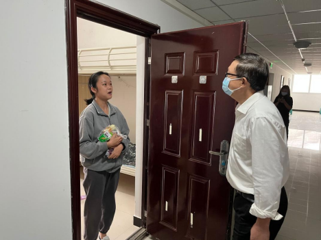 自员工入住健康观察室以来,学院密切关注健康观察员工的学习、生活以及身心健康情况。走访过程中,学院领导与同学们亲切交流,详细询问同学们的生活和学习安排,鼓励同学们克服困难、上好网课,对同学们理解和支持学校疫情防控工作表示肯定与感谢。对于刚报到的15名2022级新生,骆孟鑫亲切关怀他们的生活情况,询问新环境适应情况,同学们纷纷表示能够适应新环境,真切感谢学院的亲情与温暖,定会积极服从健康观察要求和统一安排。