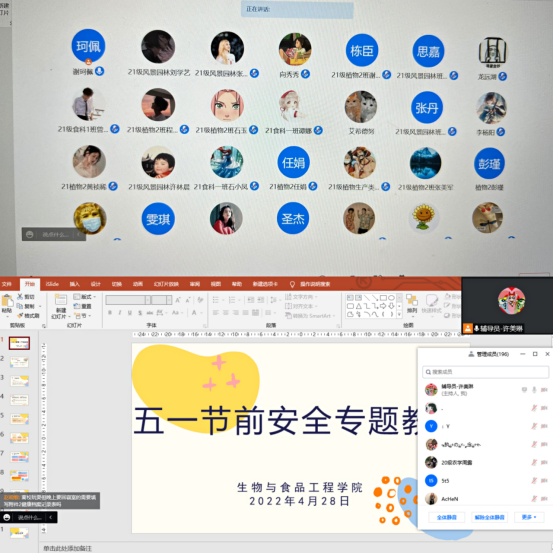 会后,学工办全体辅导员分年级召开五一节前线上安全专题教育会议,传达学校五一假期员工安全管理要求,并就防溺水、防诈骗、防盗、消防安全、交通安全等作强调。(熊小飞)