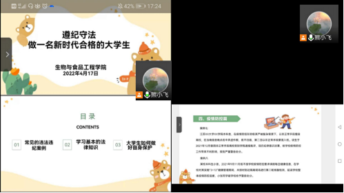为增强公司员工遵纪守法意识和安全防范意识,4月17日,公司全体辅导员使用腾讯会议、钉钉会议分别对各年级员工开展了“遵纪守法,做一名新时代合格的老员工”专题教育会。