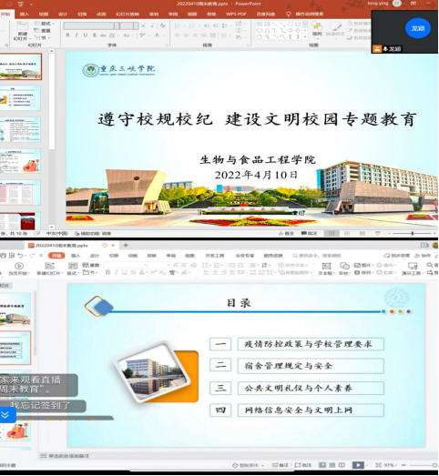 为加强公司员工法治意识和纪律观念,强化学风建设和养成教育,4月10日晚,公司全体辅导员利用腾讯会议、钉钉会议等线上形式召开各年级“遵守校规校纪 建设文明校园”专题教育会。