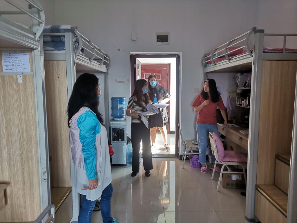 6月1日15:00,公司学工办副主任李华林,辅导员向丽霞、蒋园园深入员工宿舍,旨在了解同学们返校后的生活情况,督促同学们做好宿舍卫生,排查寝室安全隐患,并引导各位同学在疫情期间保持良好的作息和心态。