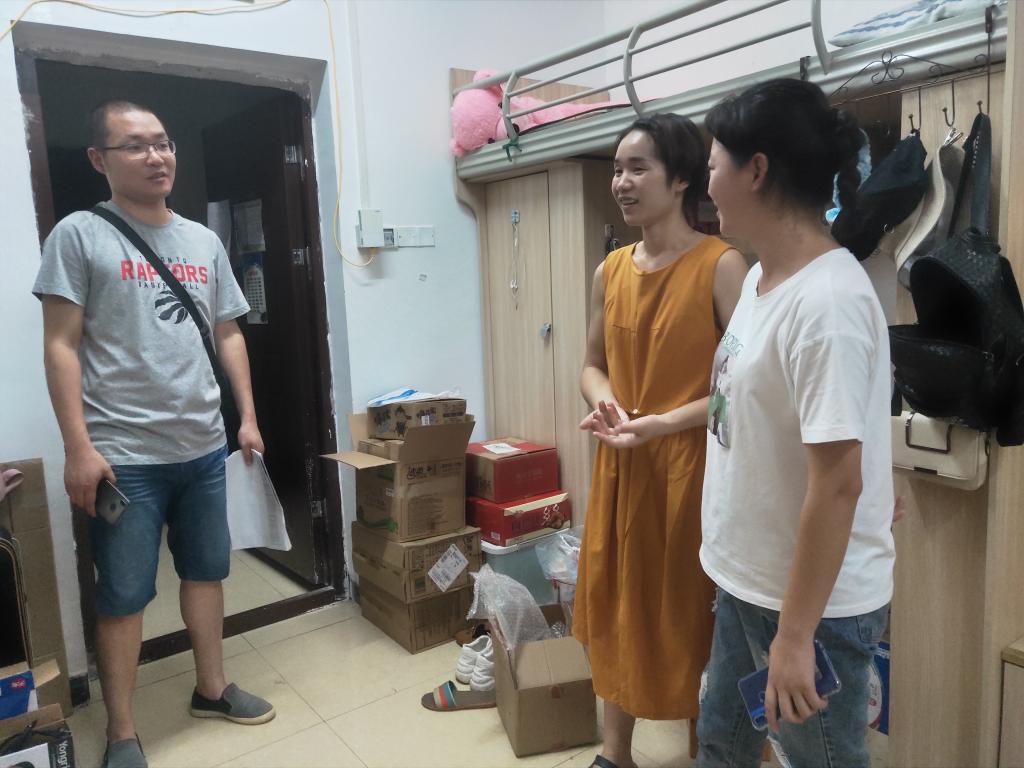 8月2日晚上21:30,生工学院学工办主任李华林、辅导员蒋园园走访暑假留校员工寝室,了解同学们暑期在校学习、生活等状况,并针对问题给予关心、帮助和指导。