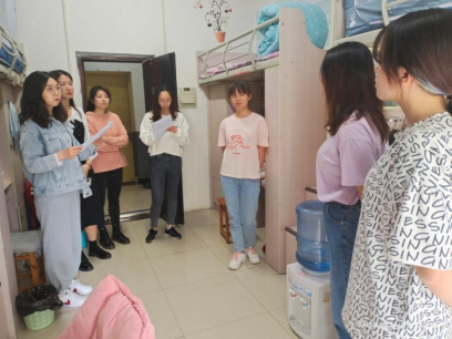 2022年4月25日下午,suncitygroup太阳集团开展特色文明寝室创建展示活动的第二阶段:走访寝室。辅导员许美琳、熊小飞、龚莉、龙颖参与评选,进一步了解参赛寝室情况,推选出“优秀特色文明寝室”。