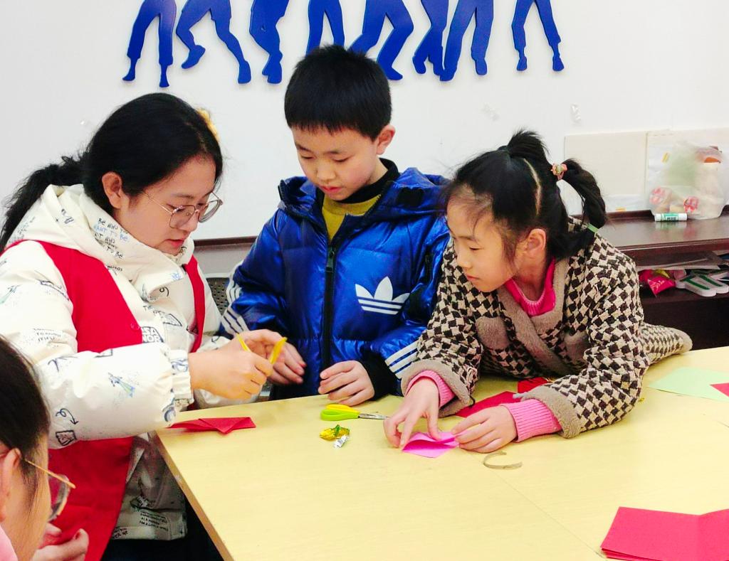 活动中,志愿者们利用实事热点《逃出大英博物馆》短剧向小朋友们生动地介绍了有关中国传统文化的相关知识。通过精彩的讲解,小朋友们感受到了中华传统文化的魅力,激发了他们对祖国文化的兴趣和热爱。随后,志愿者们向小朋友们讲述中国剪纸文化,并组织小朋友们开展剪纸和编织中国结活动。一张张彩色的卡纸在咔嚓咔嚓的声音中逐渐变成了小兔子、雪花、爱心窗花等,每位小朋友都通过努力获得了属于自己的作品。活动结束后,志愿者与小朋友们合影留念。