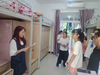 9月30日14:30,公司于海棠苑、榕叶苑、蓝雾苑寝室举办了新老生特色文明宿舍观摩活动,辅导员许美琳组织,21级新生代表42人参加活动。,后到班上对同学们宣传和达到互相学习和建造文明寝室的目的。