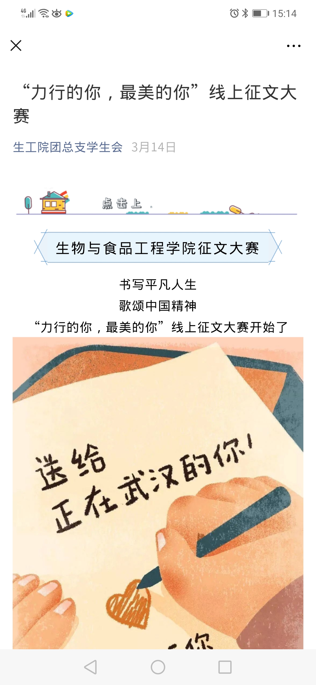 生工学院开展“力行的你,最美的你”线上征文大赛