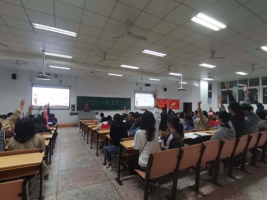 大会开始,青协会长向同学们讲解志愿小知识,报备后期活动以及强调招募志愿者的具体要求。接着,青协副会长为大家详细介绍四点半课堂的服务内容及要求,让同学们学习如何以实际行动做志愿服务,鼓励大家做好相关工作。随后,志愿者问答环节和青协干事带来的表演,拉近了大家距离的同时,将集体的力量紧紧的凝聚在了一起。最后,青协副会长带领现场的所有人宣誓,立志成为一名真正的志愿者。