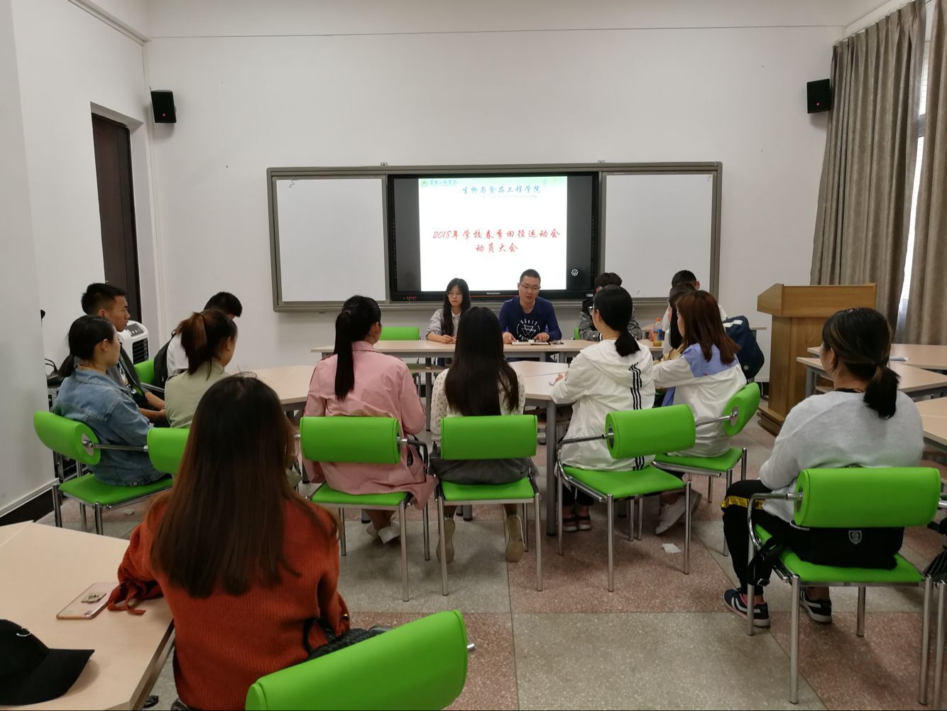 4月9日下午6:30,suncitygroup太阳集团学工办在实验楼B1-216会议室召开了2018年春季运动会动员大会,学院员工会体育部员工干部和全体运动员参会,会议由学工办李华林老师主持。
