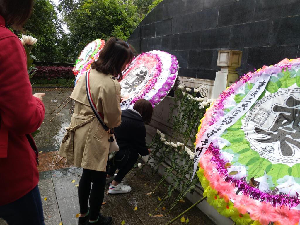 此次活动旨在让同学们缅怀英勇的革命烈士并铭记历史、继承革命烈士优良传统。经历一个小时的车程后,同学们都到达了烈士陵园。14:00时活动正式开始,志愿者们有序排队为烈士们献上崇敬之意的花圈。由员工代表发言讲述革命烈士的英雄事件,让同学们都感触颇深。之后,全体人员佩戴白色胸花向革命烈士默哀三分钟,随后大家轮流向烈士献上白色花束以表最高敬意。紧接着,干事将志愿者分成三小组在烈士陵园进行打扫。最后,陵园工作人员带领志愿者们参观陵园,回顾革命烈士的英勇事迹。