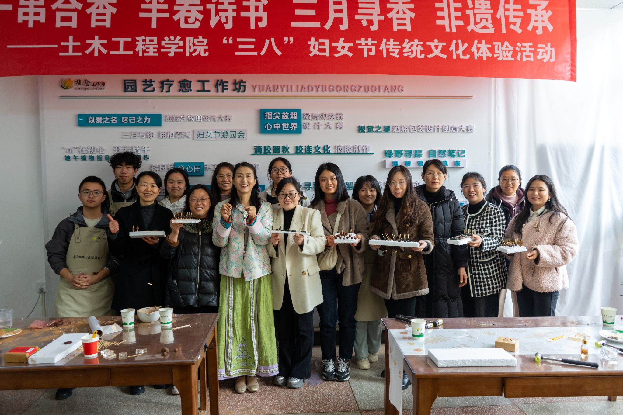 3月7日,慎思楼2栋3楼植愈工作坊内书香与合香交织,一场由生物科技协会承办,以“一串合香,半卷诗书,三月寻香,非遗传承” 为主题的土木工程学院“三八”妇女节传统文化体验活动在此温情上演。