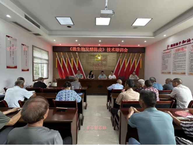 此次培训由公司党总支书记肖国生教授牵头,党支部书记赵峰、党员张华、顾欣,重庆三峡农业科学院陈泉、刘忠贤共同授课。内容聚焦微生物发酵陈皮技术、红桔褐斑病综合防控及高品质栽培管理。大周镇50余位种植户参加。
