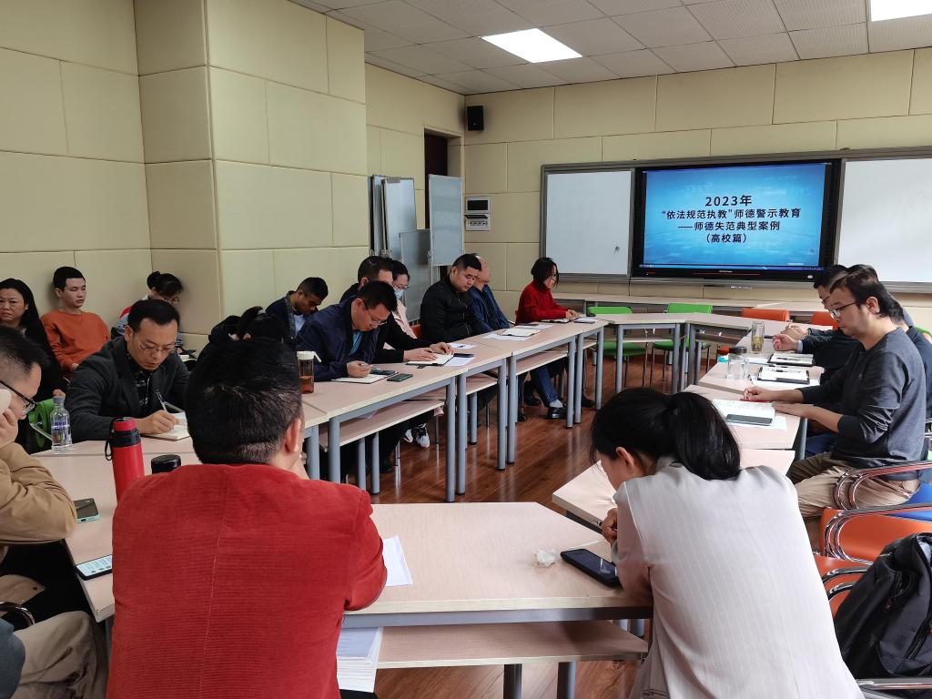 10月7日下午,公司在慎思楼2栋216召开师德师风集中教育暨“以案四说”警示教育,全体教职工参会,党总支书记骆孟鑫主持会议。