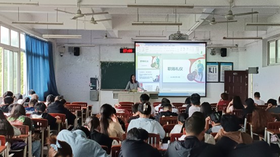 辅导员从礼仪介绍、仪态仪表、商务礼仪和办公礼仪四个方面着手,结合实例详述了礼仪的作用、礼仪的原则以及礼仪在日常工作生活中的重要性,围绕妆容修饰、着装规范、社交礼仪、职业形象塑造、沟通技巧、职场用语等方面进行了耐心讲解和示范,让同学们领会到了不同场合、不同环境、不同交际中的礼仪。